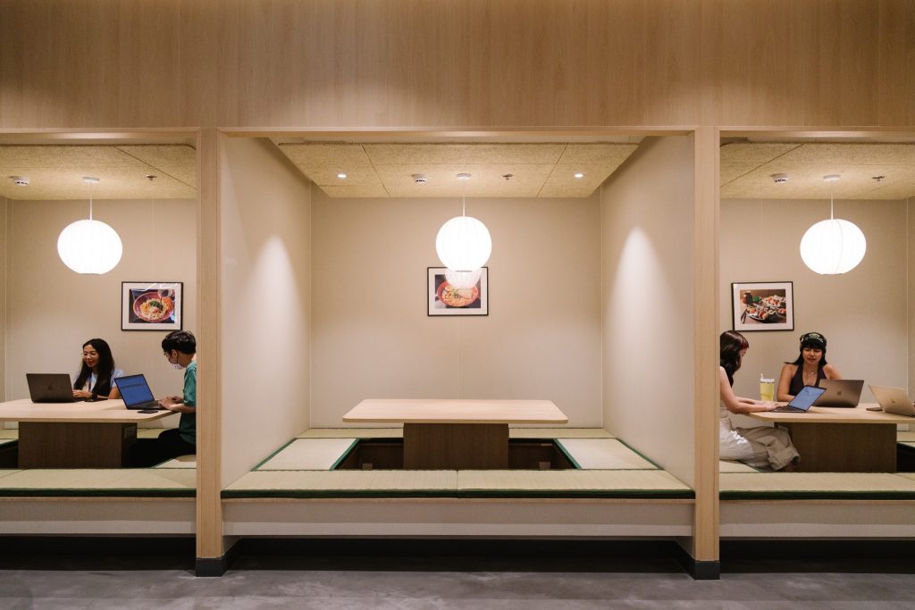 Inspired by Japanese tradition, our tatami-themed collaboration areas offer a cozy and intimate space, perfect for small group meetings or lunch breaks that foster team connection. Each seating area accommodates 6 people and is named after delightful dishes, including Japanese favorites like sushi, ramen, and udon, as well as Thai desserts such as Thong Yip (ทองหยิบ), Thong Yot (ทองหยอด๗, and Bua Loi (บัวลอย).
