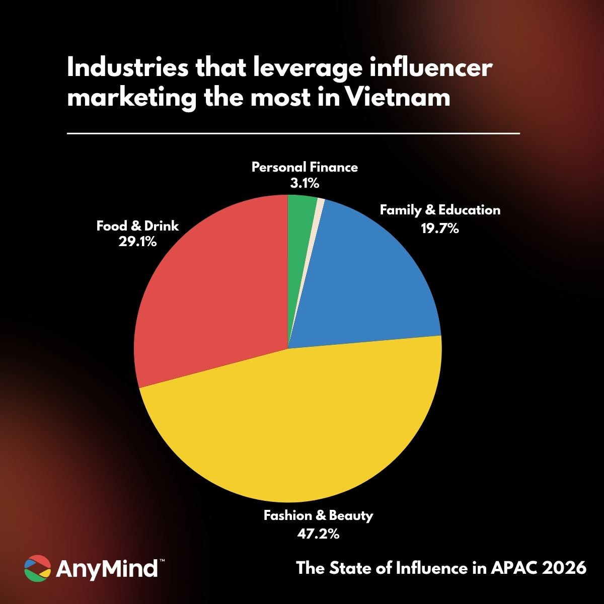 The role of trust becomes even more apparent when looking at where brands are investing. Categories such as Fashion & Beauty and Food & Beverage account for 76.3% of influencer marketing spend in Vietnam. These are highly competitive spaces which are fast-moving, saturated, and often filled with similar product claims. In such environments, consumers are trying to make the right choice among many similar options.