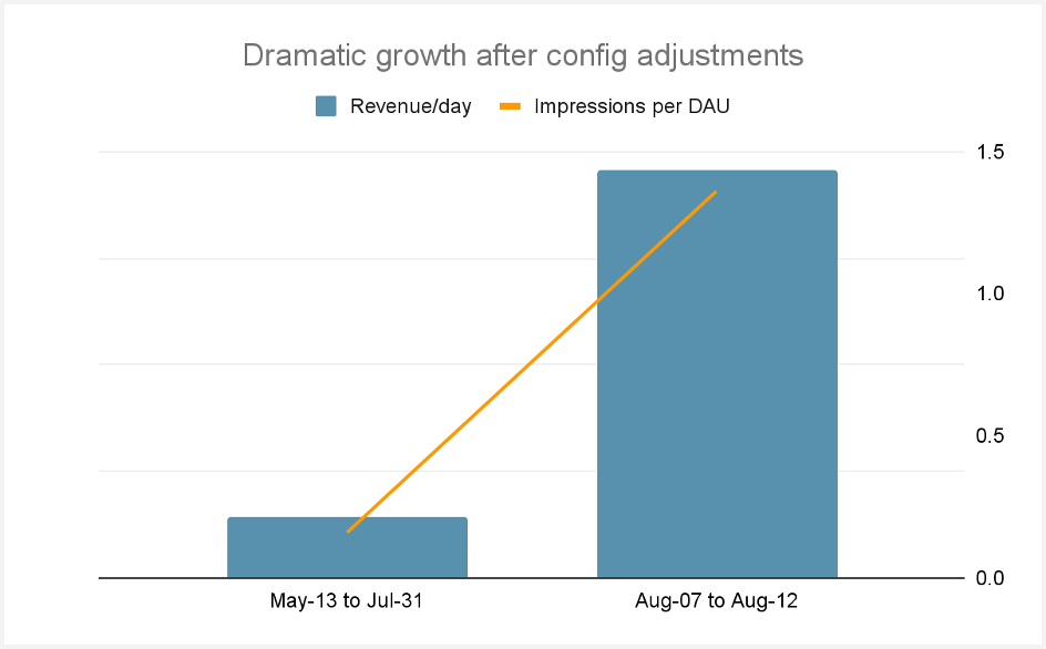 +560% Daily Revenue Growth & +735% IPD (Impressions per Daily Active User)