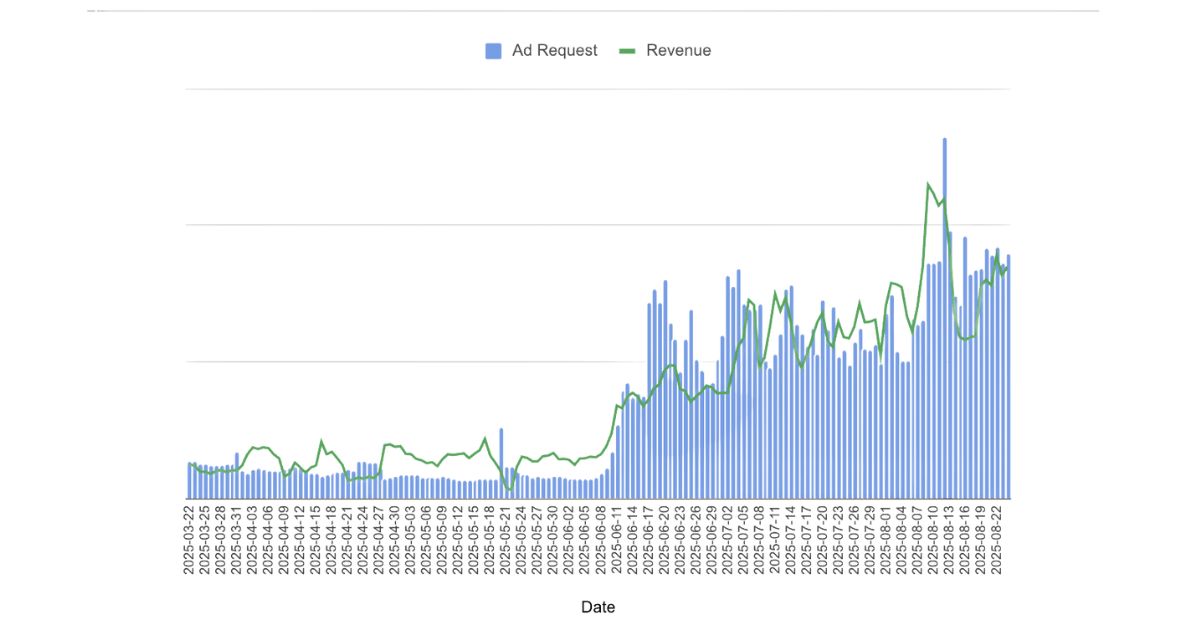 The impact was immediate and dramatic. Within weeks of implementation, daily ad revenue increased by over 500%. Previously stagnant performance transformed into consistent month-over-month growth.