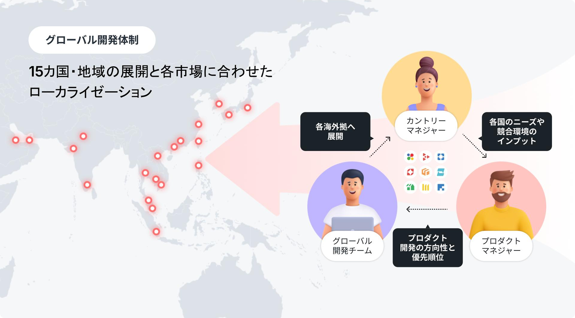 We have development teams across five global locations (Japan, India, Thailand, Vietnam, and China), with our in-house recruiting team establishing a framework to hire exceptional engineers globally. We achieve both efficient development through globally unified products and rapid feature development based on customer needs from our business units in each country. To respond to rapidly changing markets and technological advances, we will further strengthen this development capability and global framework to ensure sustained competitive advantage.