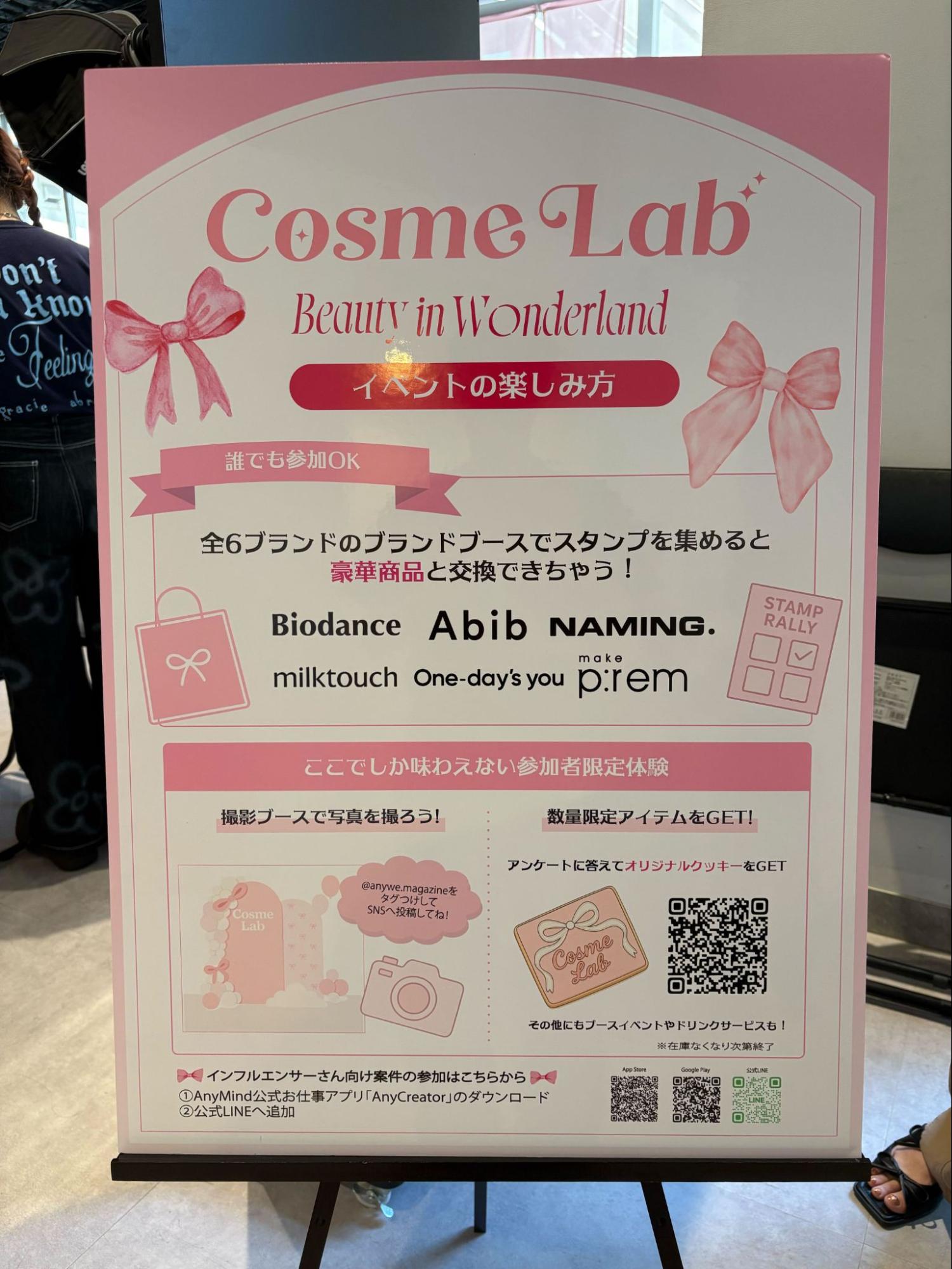 Cosme Labは、美容インフルエンサーと韓国コスメブランドがリアルでコミュニケーションをとり、商品を実際に体験できるイベントです。SNSやオンライン上の情報だけでは伝わりきらない“使い心地”や“質感”を、リアルの場で体感することで、ブランドや商品の理解を深めてもらうことを目的としています。来場者の方には、スタンプラリー形式で各ブランドのブースを巡り、ブランドや商品の理解を深めていただきました。