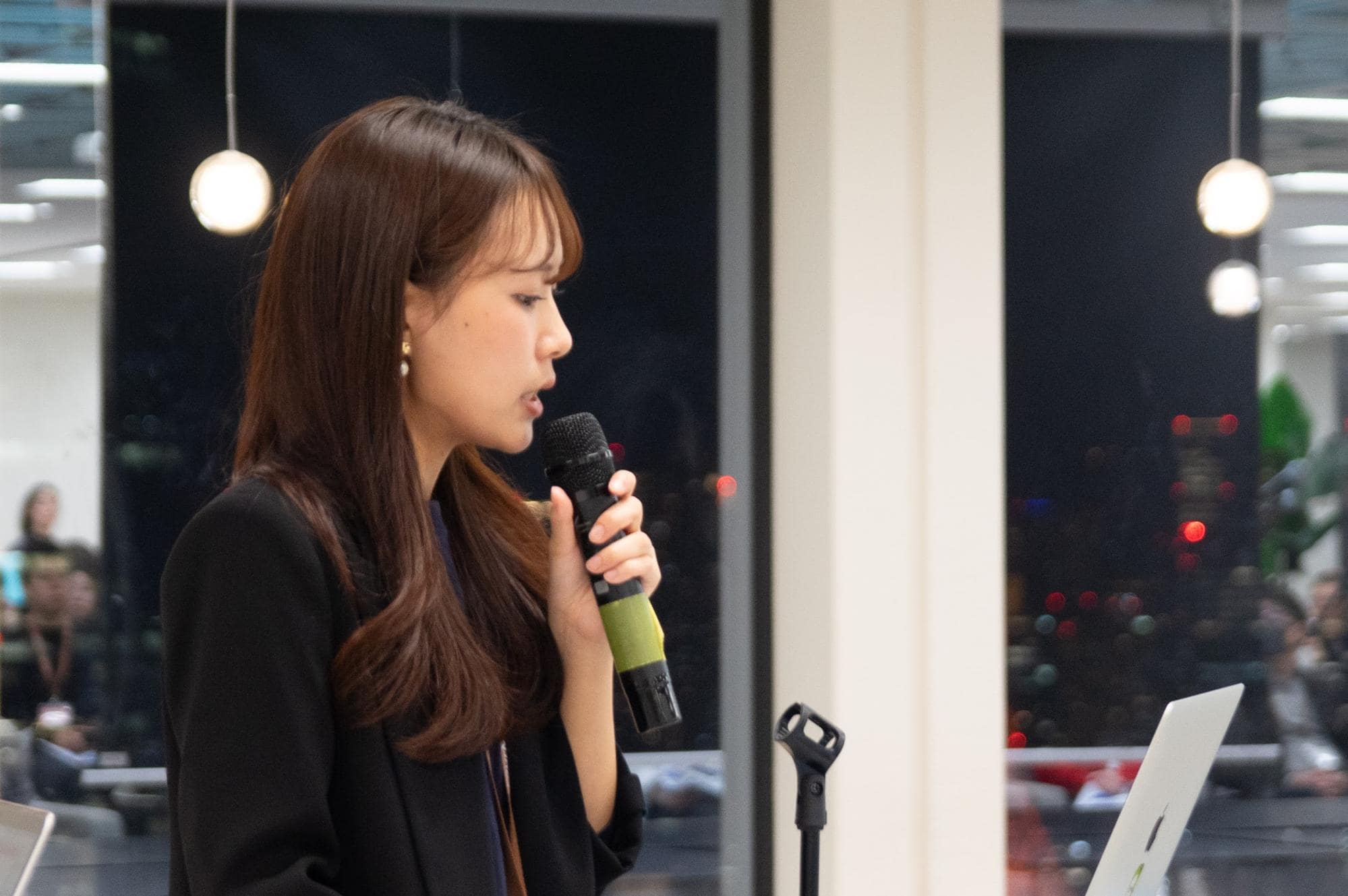 (スピーカーである株式会社フォーエムのシニアアプリコンサルタント、萩原千賀)