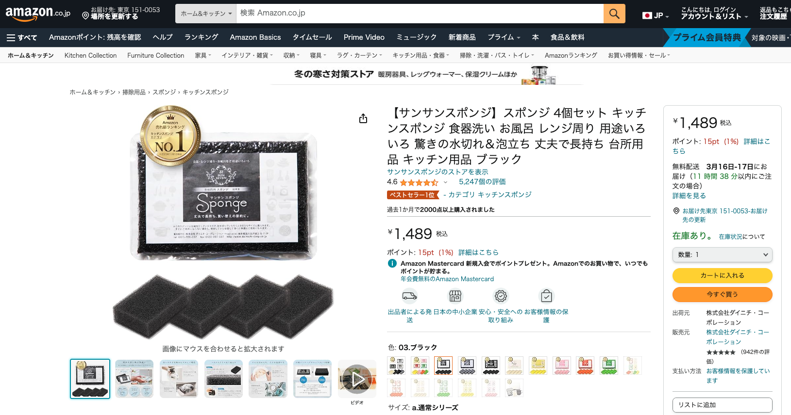 (※2018年8月~2023年7月14日現在 掃除用品スポンジ部門)