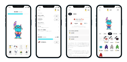 또한 신규 사용자 확보와 유지율 향상도 목표로 하고 있습니다. 현재 대부분의 포인트는 PayPay 등으로 환전되고 있지만, 이를 캐릭터 아이템 구매 등에 활용하게 해 앱 수익률도 높이고자 합니다.