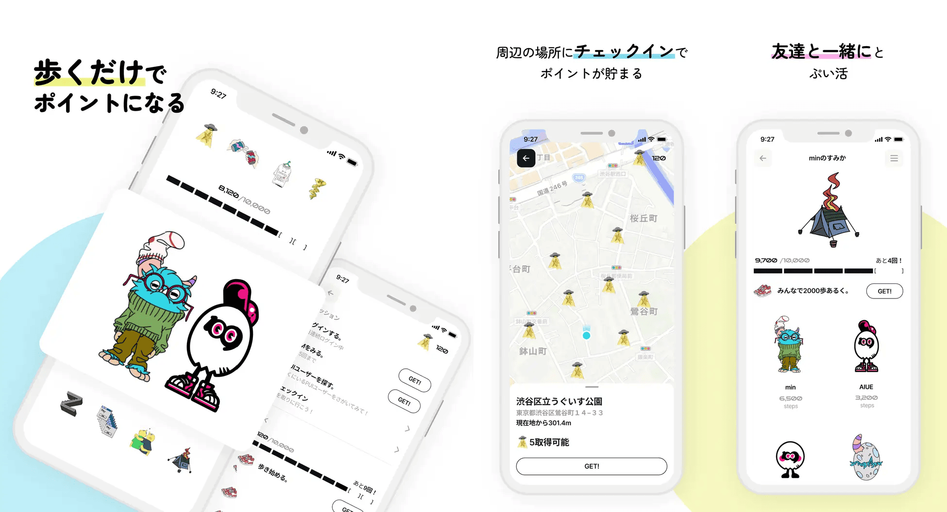 또한 ‘체크인’ 기능을 활용한 실매장과의 연계 캠페인도 강화해 나갈 예정입니다. 과거 시부야 유명 상업시설과의 콜라보를 통해 한정 캐릭터 ‘마루마루’를 선보였고, 이 캐릭터 역시 도지처럼 걸으며 성장하고, 앱 내 포인트로 의상과 액세서리 등을 교환할 수 있습니다.