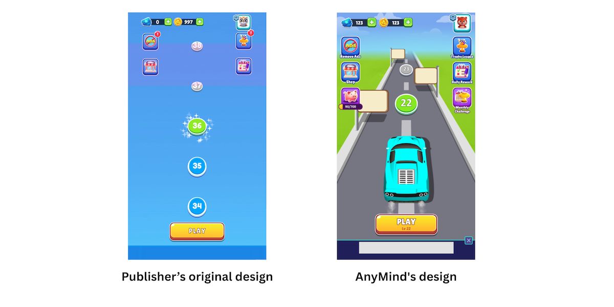 The redesigned visuals and improved UI helped increase user engagement, with players staying in the game longer and progressing through levels more smoothly. The new ad placements opened up additional revenue streams while maintaining a seamless user experience. Overall, the publisher saw a noticeable improvement in user retention and monetization.