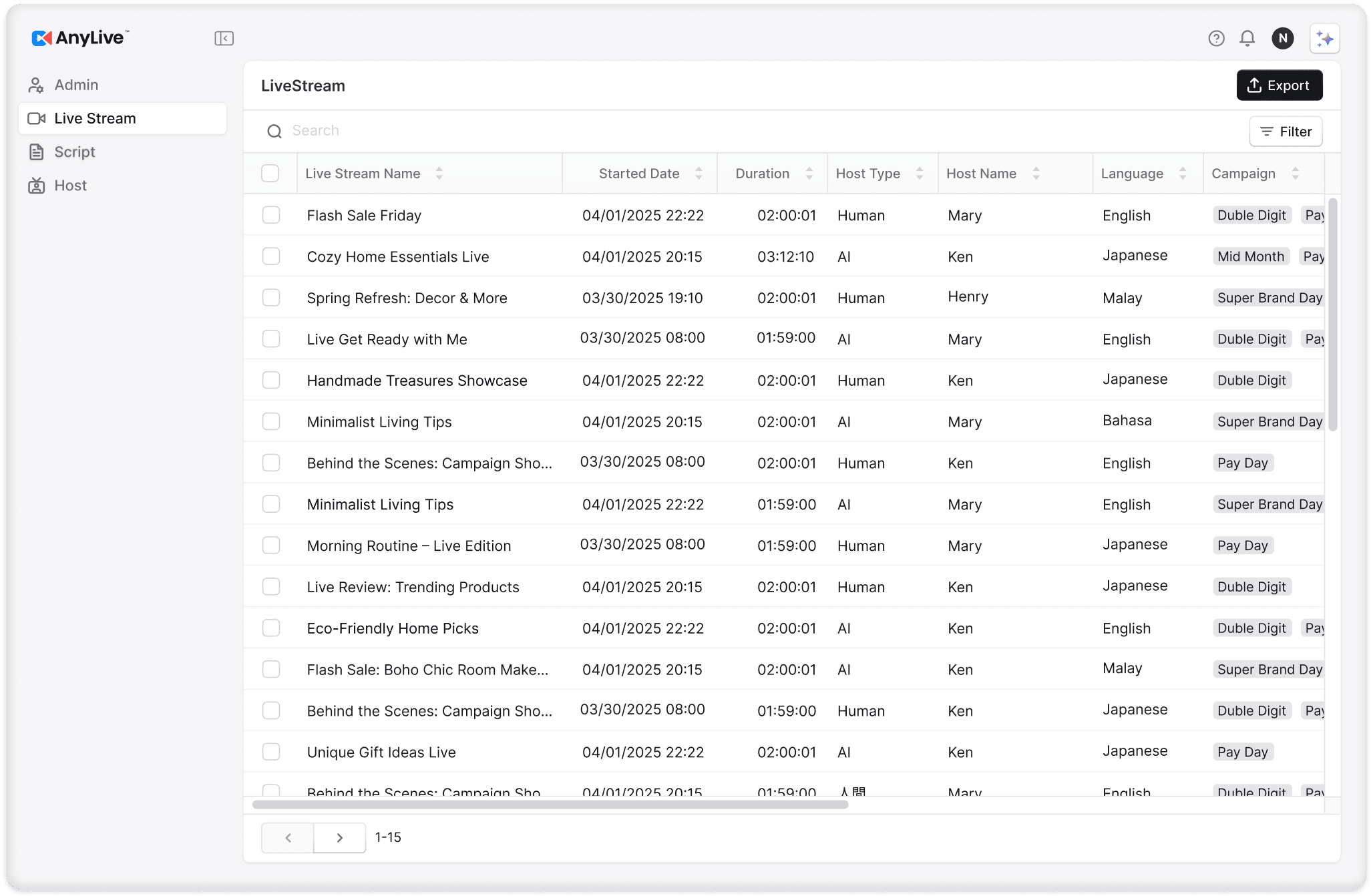 AnyLive previously supported AI-generated scripts from product URLs. The platform now goes a step further and uses analyzed data to refine and optimize script content for future broadcasts. Both human and AI live stream hosts can now leverage automatically created, brand-aligned, natural-sounding scripts that incorporate viewer sentiment, comment trends, retention data, and conversion behavior.