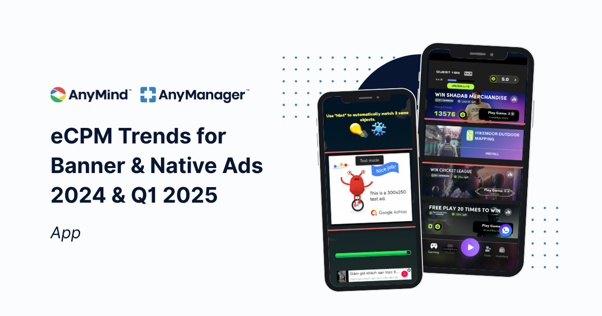 Stay ahead of the curve with our deep dive into our 2024 and Q1 2025 eCPM (effective cost per mille) trends for Banner and Native ad formats—analyzing data from AnyManager across 600 mobile app publishers based in Asia, covering markets including the United States, Japan, Brazil, Canada, Taiwan, Mexico, Germany, France, United Kingdom, Thailand, Malaysia, Australia, India, Korea, Vietnam, and Indonesia.